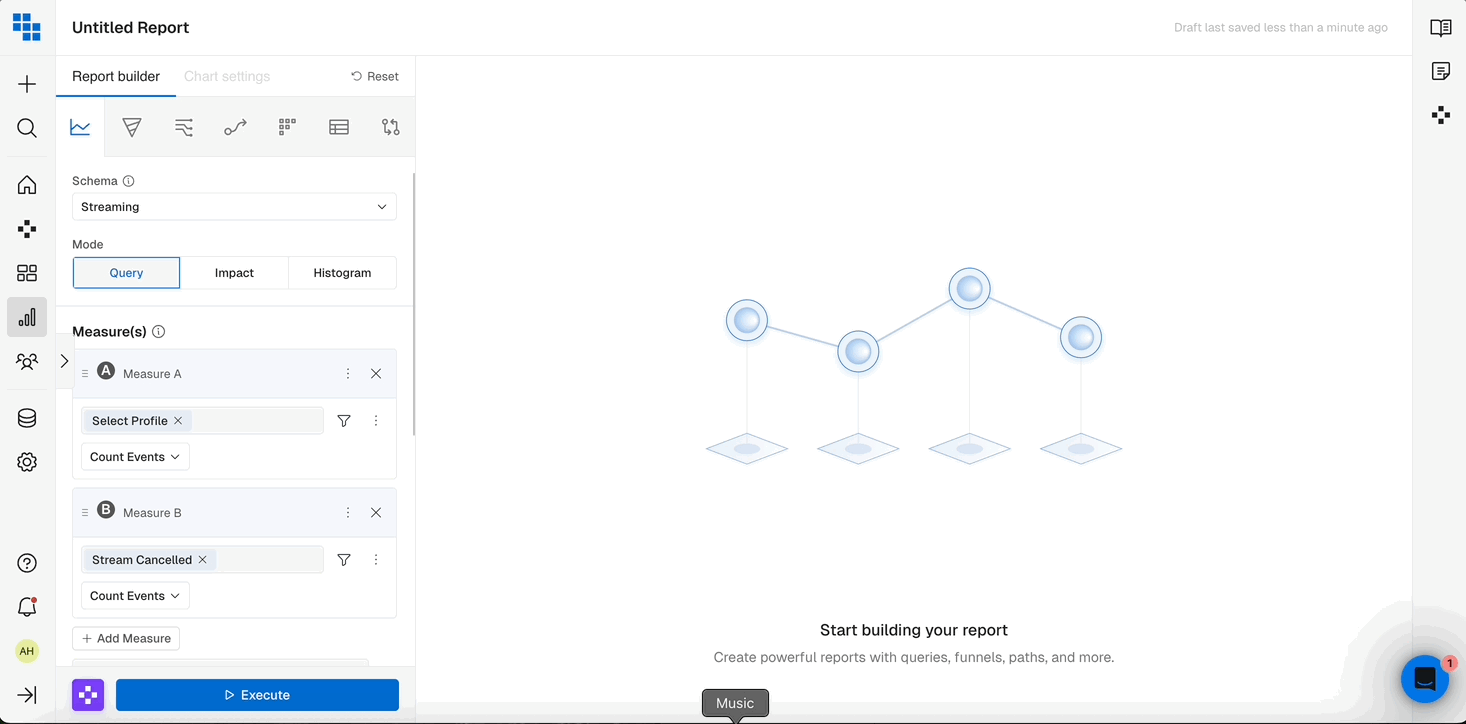 2. Choose the Metric you want to measure that is going to be impacted. Typically these are Sum, Count Event, or a Compound Measure, showing percent per User.