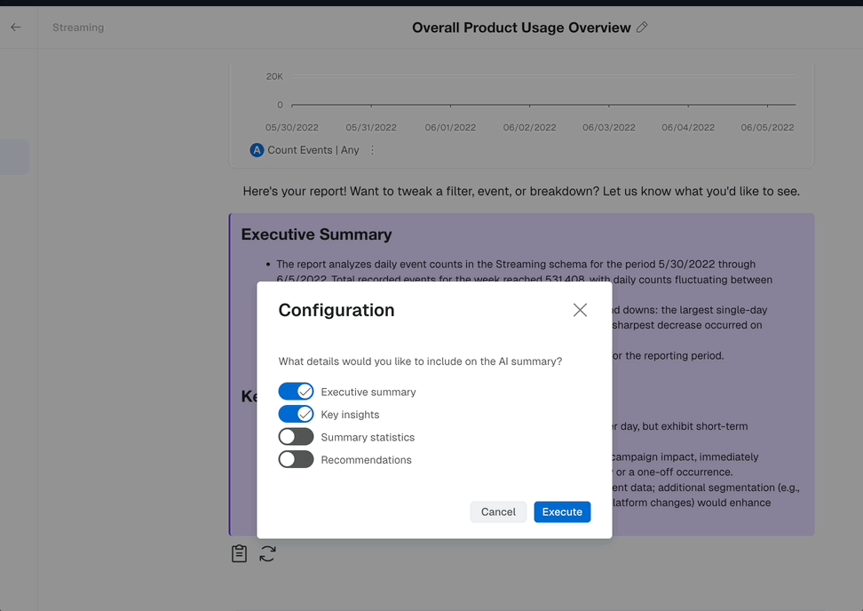 - Ask your questions and get a report or cohort built using natural language