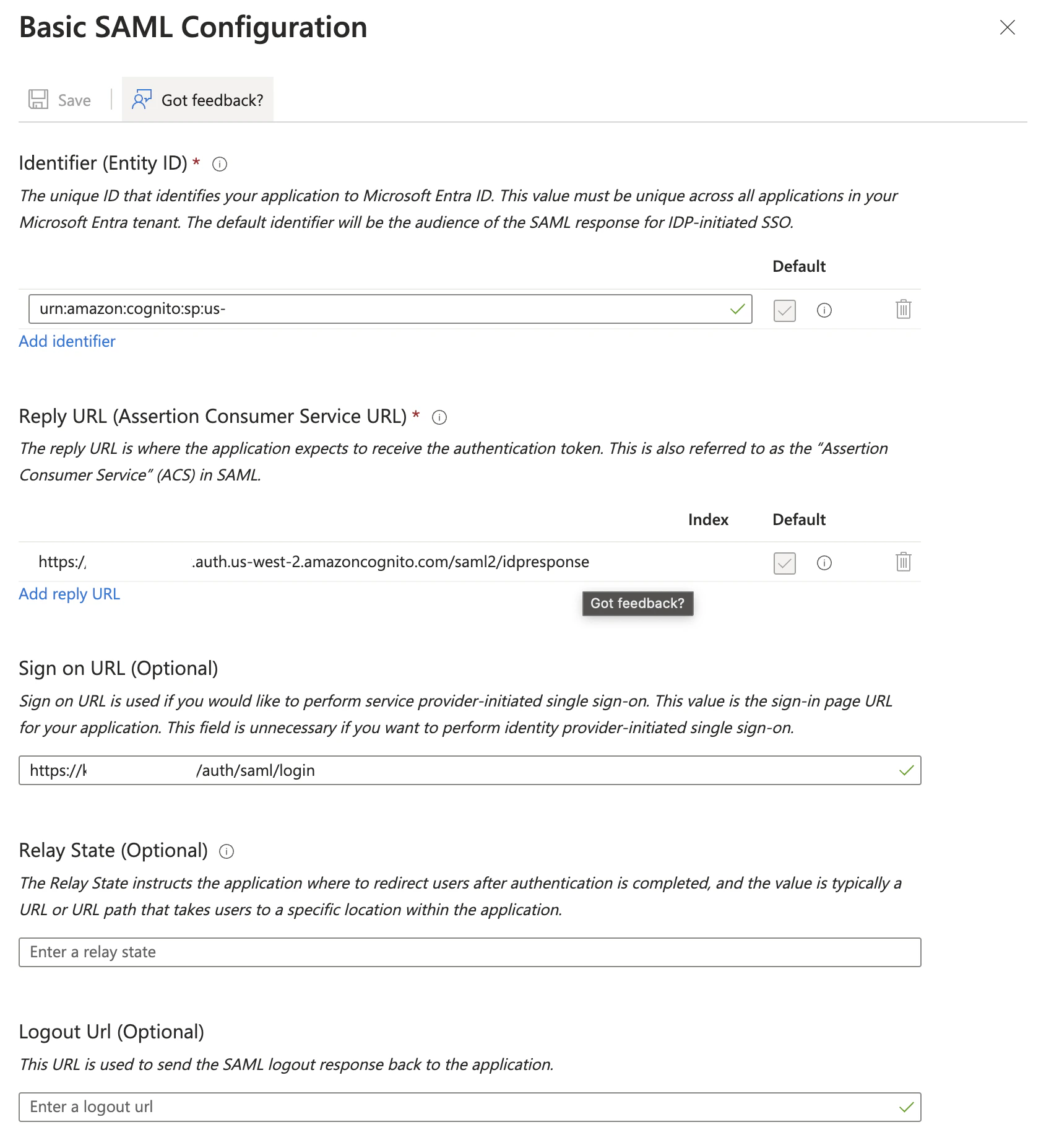 urn:amazon:cognito:sp:<CONNECTION_ID> - Reply URL: