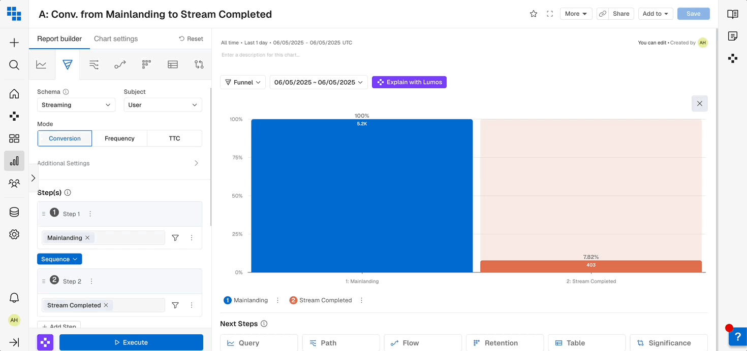 In Reports, a tooltip will appear when users hover over the chart. These new tooltips feature:- Support for Query, Funnel, Flow and Retention Report Types.