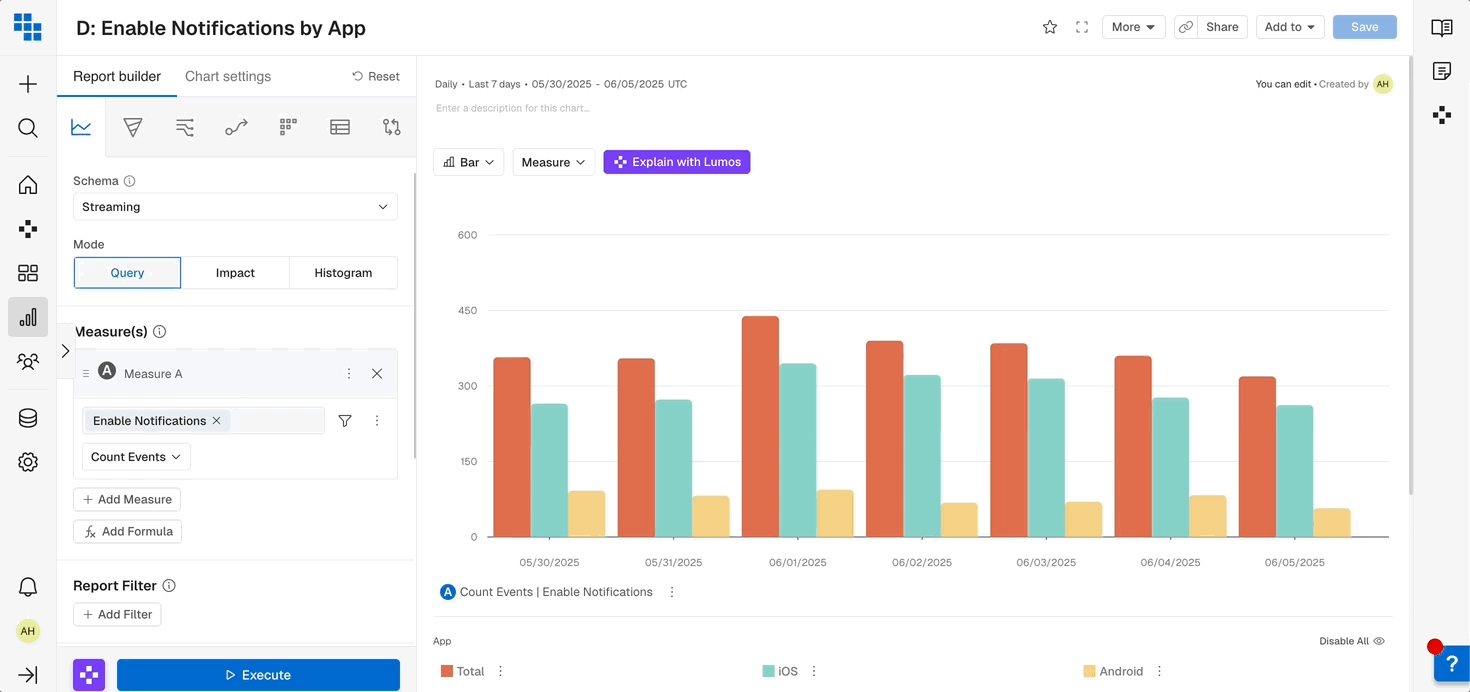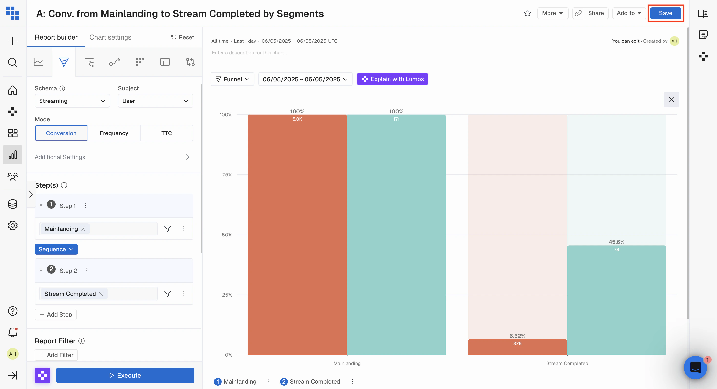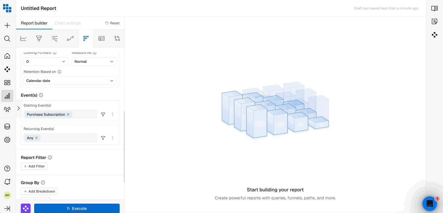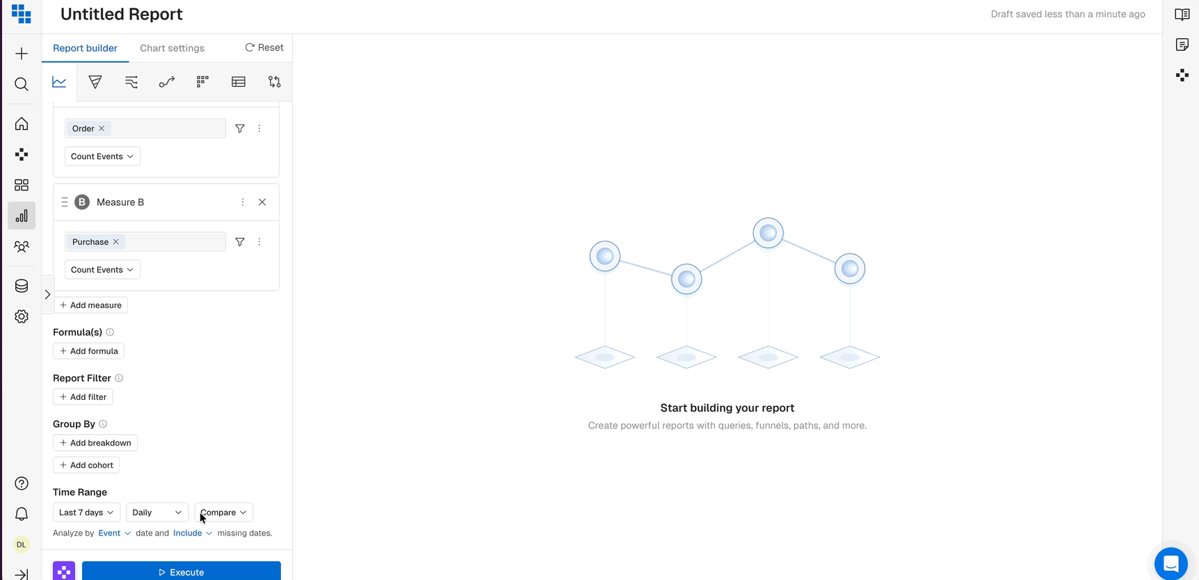 When Measures are complicated or defined business logic, it may be hard for everyone across multiple teams to remember all the details. Luckily, it only has to be defined once and can then be saved in Kubit.- Build and execute the Measure.
