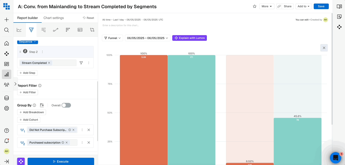 - Funnel: Analyze Visitor ID conversion through a funnel.