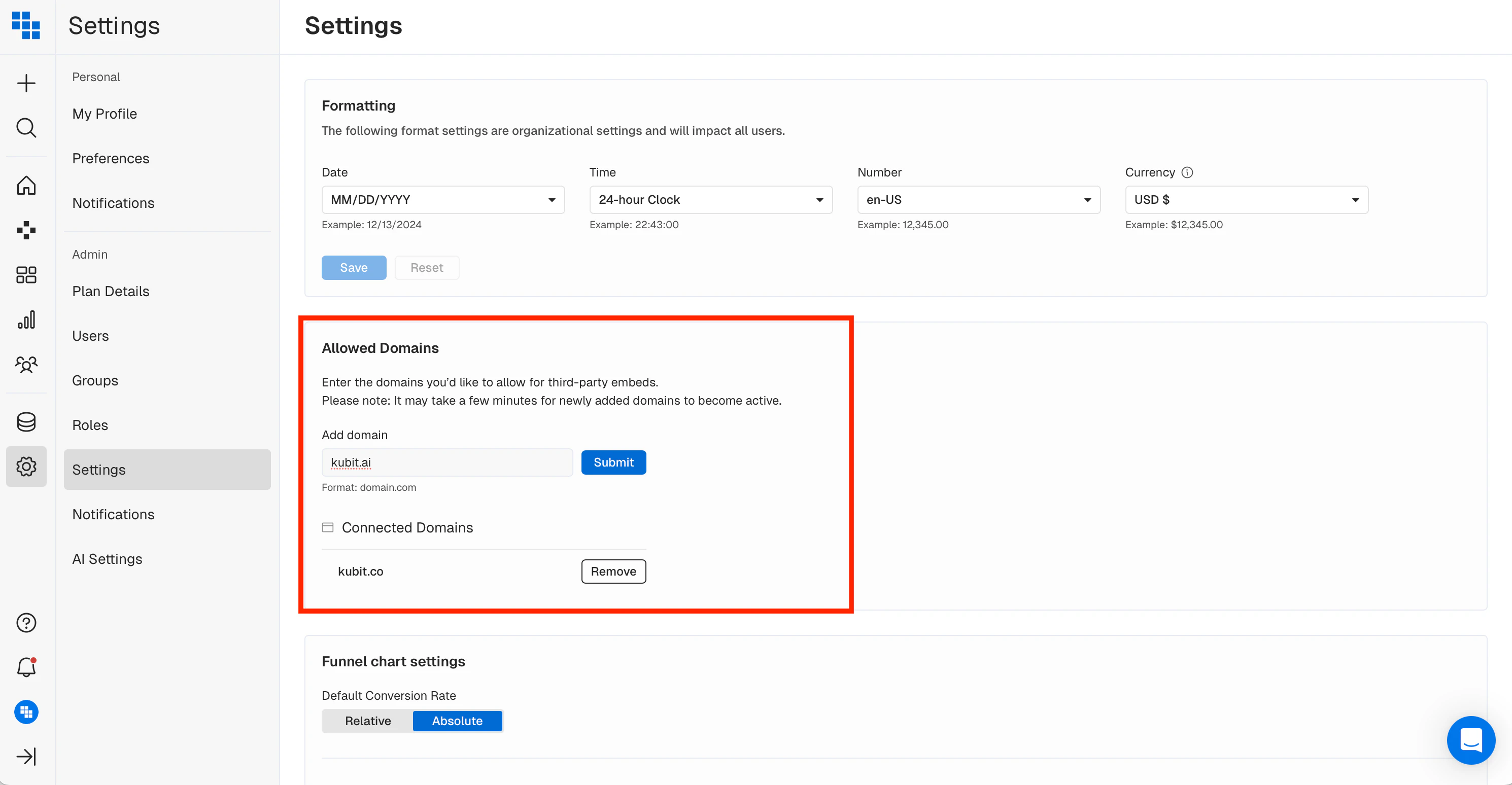 - Add the domain of the website where you want to embed content. This only needs to be done once.