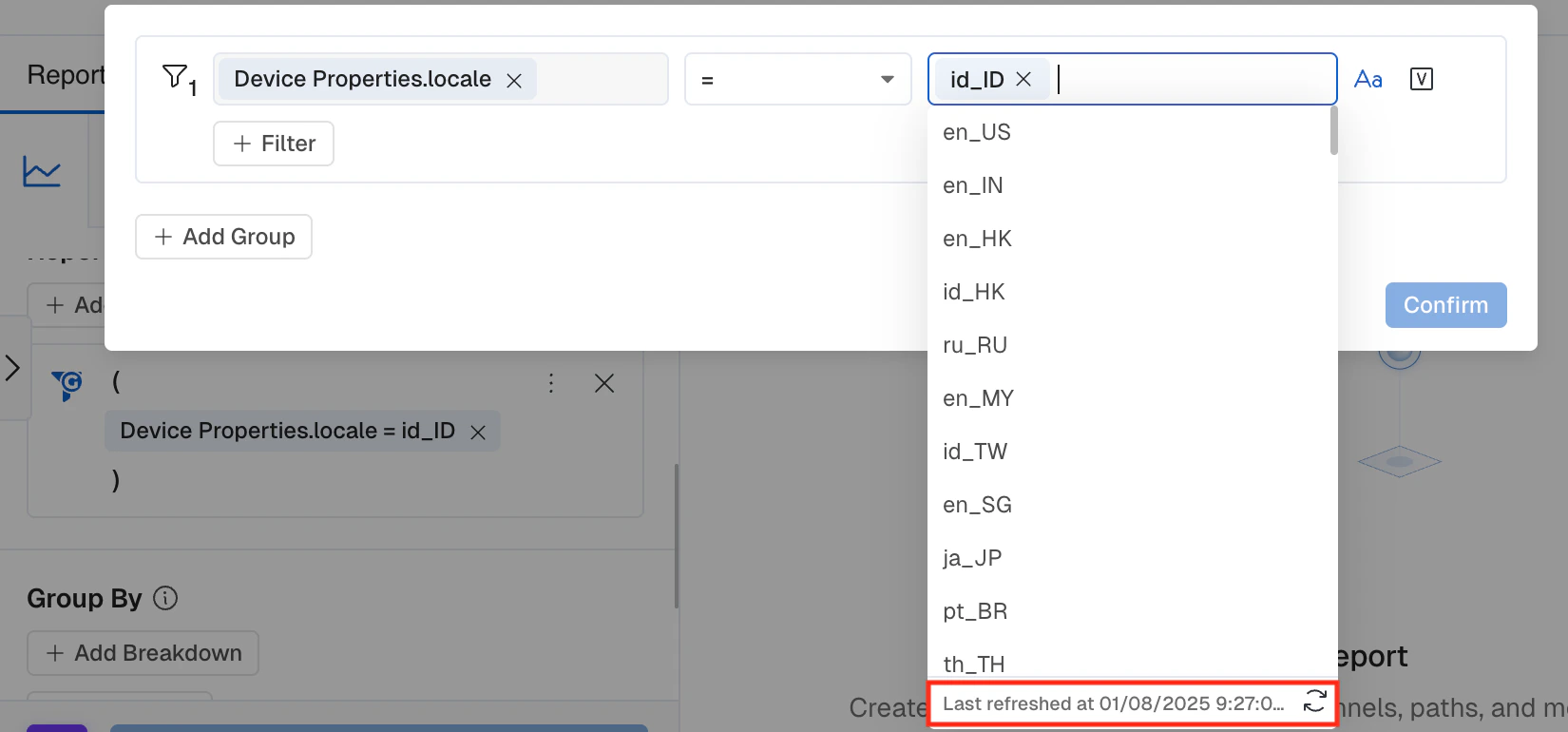 - Because these aren’t categorized using our Event Field Value refresh you will have to manually enter the value you want to filter by.