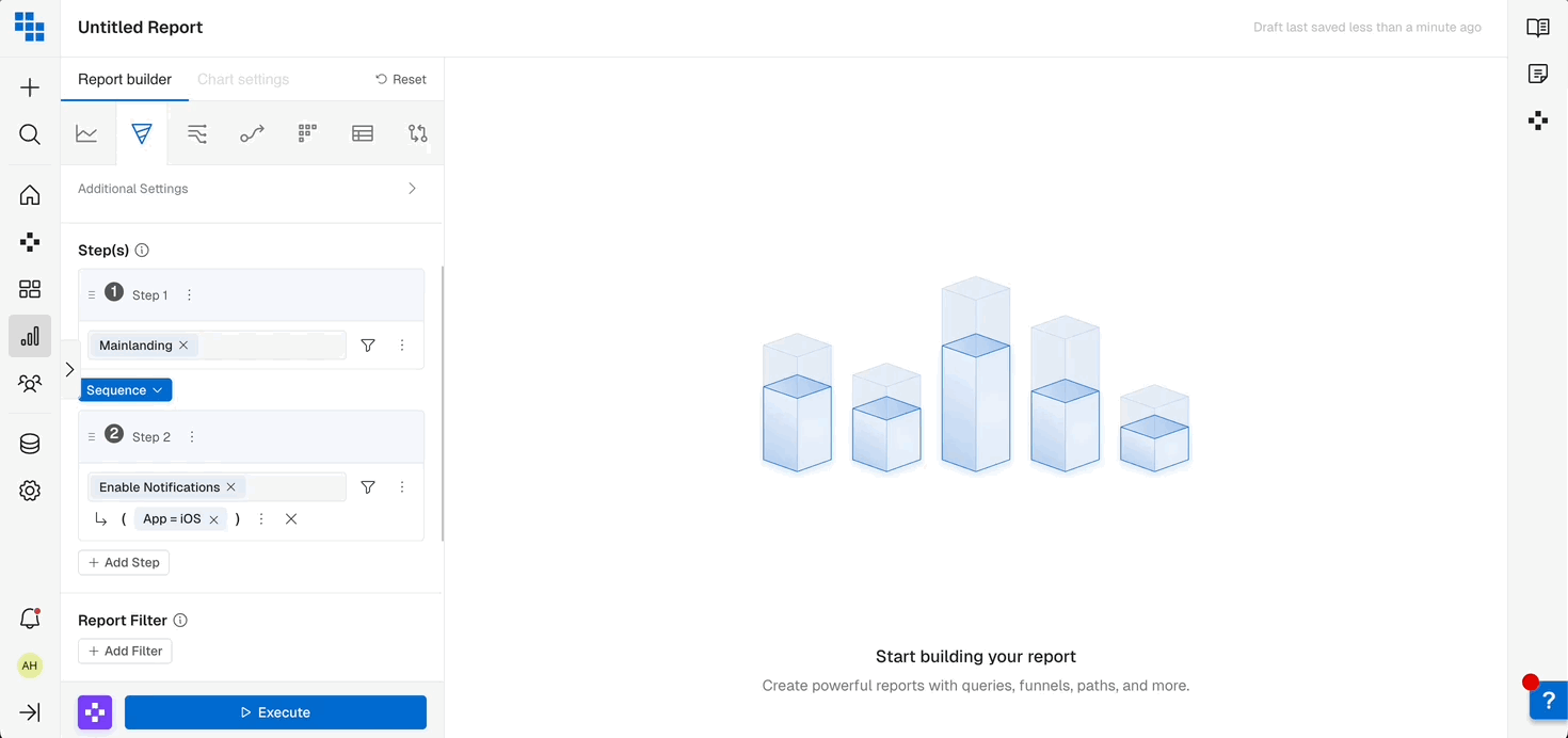 In Kubit, you can drag and drop steps to reorder them as needed when building a funnel using a “Sequence” or “Exact” Order.