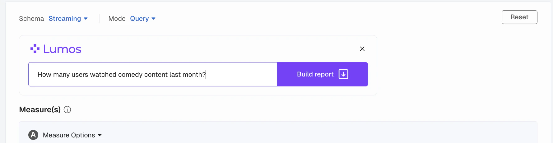 At the top of all Kubit reports you’ll see a new text box, this is where you can type in your question, use case, or report definition and have Lumos build it for you.