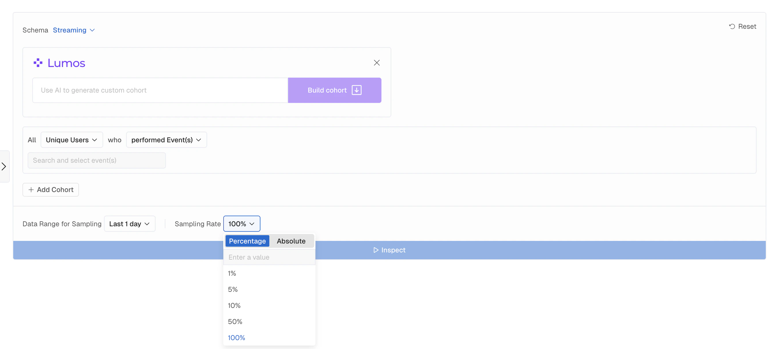 When inspecting a cohort, sampling rate can also be applied to reduce returned data volume.